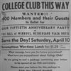 (Below Photo #3 Invite, Cincinnati Post 4-13-43) The College Club of Cincinnati will meet at 12:15 on Saturday in the Hall of Mirrors of the Hotel Netherland Plaza to celebrate the completion of 50 years of service to the community and the country. Due to the troubled times, the committee debated the advisability of proceeding with plans for a celebration. But, as it is admittedly a time of peril for the universities of the world, it seemed to be a fitting time for the friends of those institutions to rally to their support. The club will make its fiftieth anniversary occasion a demonstration of faith.